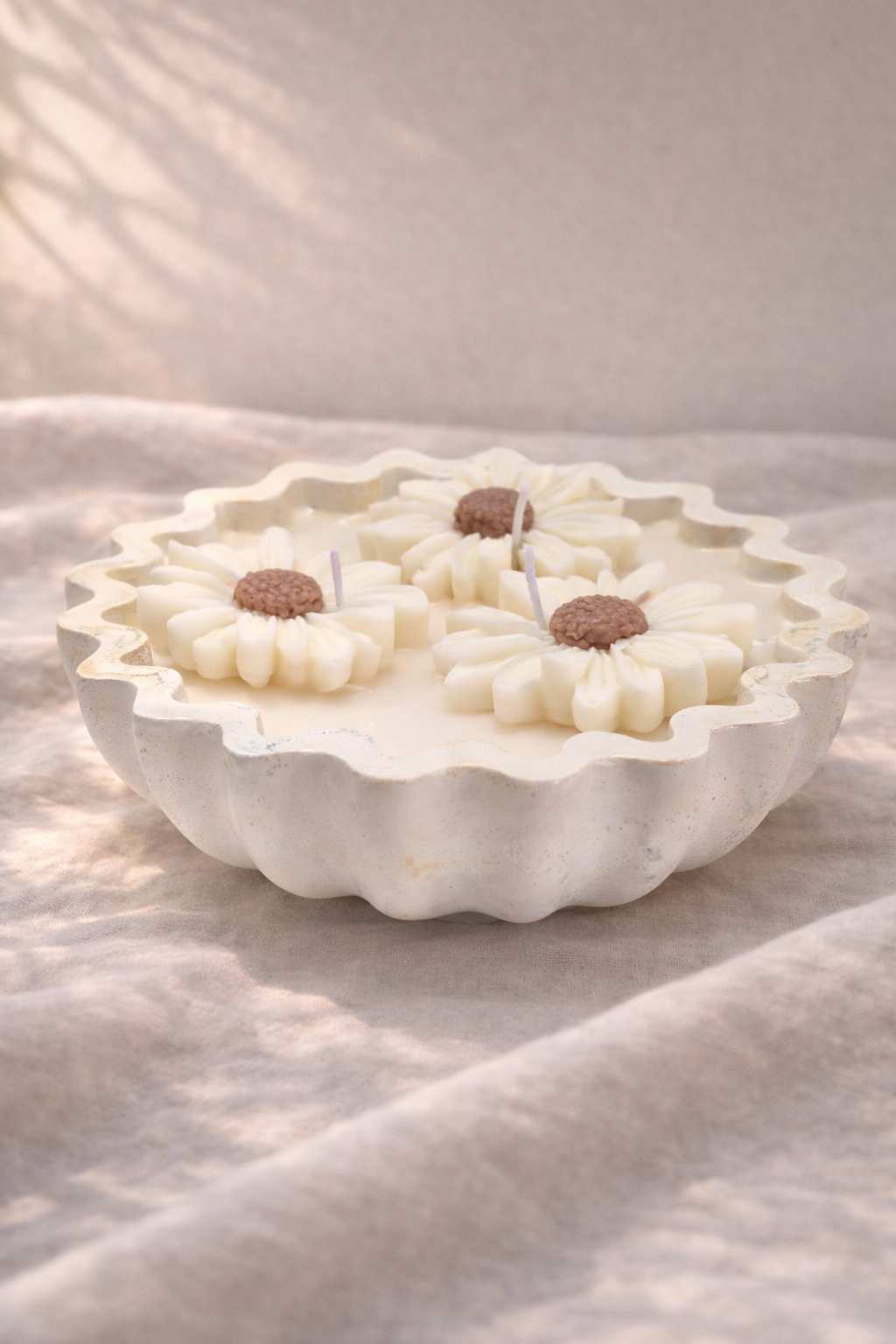 O recipiente ondulado, moldado artesanalmente, abriga flores escultóricas inspiradas nas margaridas, cuidadosamente esculpidas uma a uma. Mais do que perfumar, Les Marguerites transforma o ambiente com suavidade, elegância e harmonia visual. Uma peça atemporal, pensada para ocupar o espaço com luz, sensibilidade estética e sofisticação. Ideal para ambientes que valorizam o luxo artesanal, o cuidado nos detalhes e a beleza das formas naturais.
